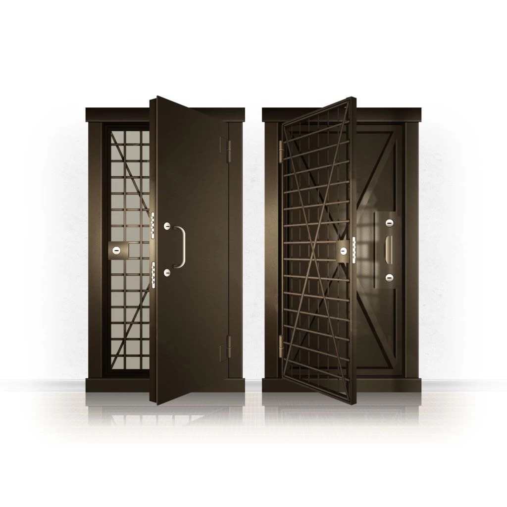 Металлические двери КХО и КХН представляют собой входные блоки, обладающие высоким уровнем взломостойкости и состоят из трех основных элементов: усиленного каркаса, сплошного металлического полотна и решетчатой двери. Дверной блок изготавливается из стального уголка 100*100 мм. Места крепления блока к стене цементируются и закрываются стальными наличниками шириной 40 мм. Крепеж заходит вглубь стены на 80 мм. В конструкции внешней створки монтируются ребра жесткости, для обшивки используется сталь толщиной не менее 3 мм. Внутренняя решетка изготавливается из прутка диаметром 16 мм. Размер ячеек решетки должен составлять не более 15 на 15 см. В точках пересечения прутья надежно приваривают друг к другу. В КХО и КХН необходимо поддерживать определенную температуру и влажность. Для этого внутреннее пространство глухой двери заполняется теплоизоляционным материалом, а по периметру двери приклеивается уплотнитель. Такие двери оборудуются замками с повышенным уровнем взломостойкости. Специализированные двери КХО и КХН в Волгодонске могут быть оснащены сигнализацией, в конструкции могут быть проушины для навесного замка и элементами для опечатывания. Если идет речь о двери в комнату хранения оружия, в створке оборудуется окно для выдачи оружия и спец. средств, которое накрывается стальной дверцей.