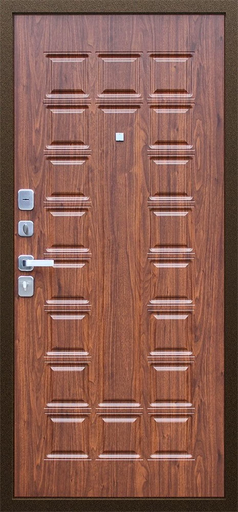 Надежная входная Дверь Спартак Орех темный премиум класса по цене 34 019 руб. Большая толщина стали защитит от проникновения в ваш дом, квартиру или коттедж. Используется очень качественная фурнитура: замки, цилиндры, ручки, защелки. Покрытие и отделка двери изготовлено под внимательным контролем производителя. Дверь имеет долгий срок службы и гарантию.