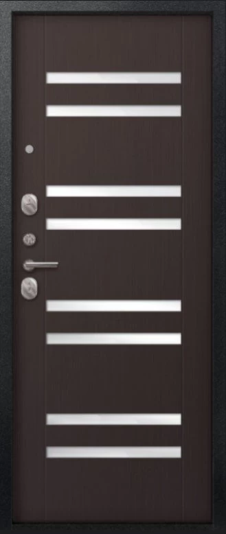 Надежная входная Дверь V-07 Черный муар - Темная лиственница премиум класса по цене 41 819 руб. Большая толщина стали защитит от проникновения в ваш дом, квартиру или коттедж. Используется очень качественная фурнитура: замки, цилиндры, ручки, защелки. Покрытие и отделка двери изготовлено под внимательным контролем производителя. Дверь имеет долгий срок службы и гарантию.