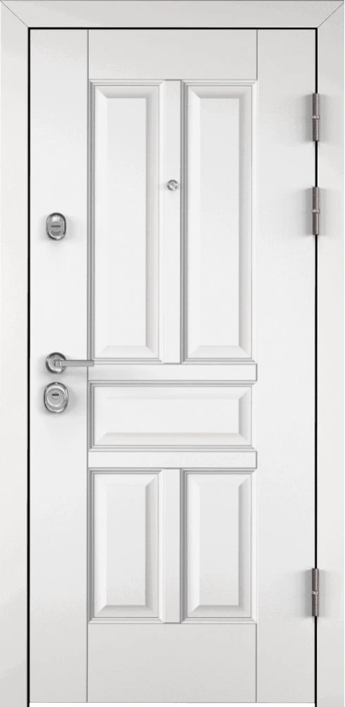 Надежная входная Дверь Цербер 3К Чёрный муар Мистраль Белый Сменная панель премиум класса по цене 42 319 руб. Большая толщина стали защитит от проникновения в ваш дом, квартиру или коттедж. Используется очень качественная фурнитура: замки, цилиндры, ручки, защелки. Покрытие и отделка двери изготовлено под внимательным контролем производителя. Дверь имеет долгий срок службы и гарантию.